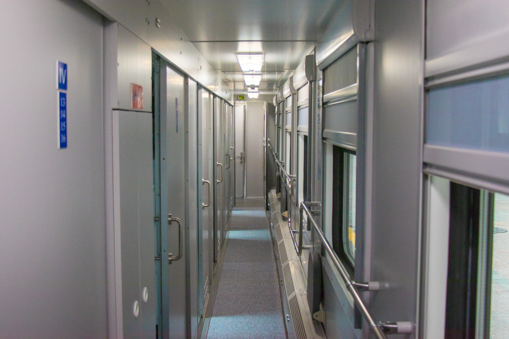 Любопытно, что в 6 вагоне пассажирские купе поделили на женские и мужские. На вагонах указано, что их построили в 1986-1988 годах, однако их эксплуатацию продлили до 2028 года после ремонта, завершенного в 2018 году. Вагон с СВ-местами построили в 2008 году.