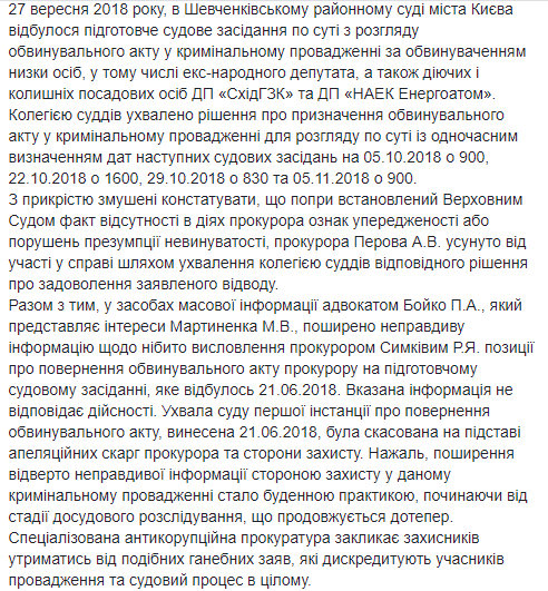 Шевченковский районный суд Киева назначил заседание по делу бывшего народного депутата Николая Мартыненко на 5 октября, 22 октября, 29 октября и 5 ноября. Об этом сообщает пресс-служба Специализированной антикоррупционной прокуратуры в Facebook.