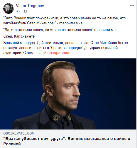Некоторые полагают, что Винник никогда не был "украинским певцом".