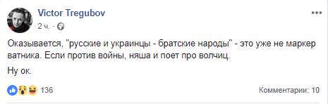 Заявление певца уже вызволо волну критики. В частности, блогер Виктор Трегубов отметил на своей странице в Facebook, что тезисы о братстве народов - это "маркер ватников".