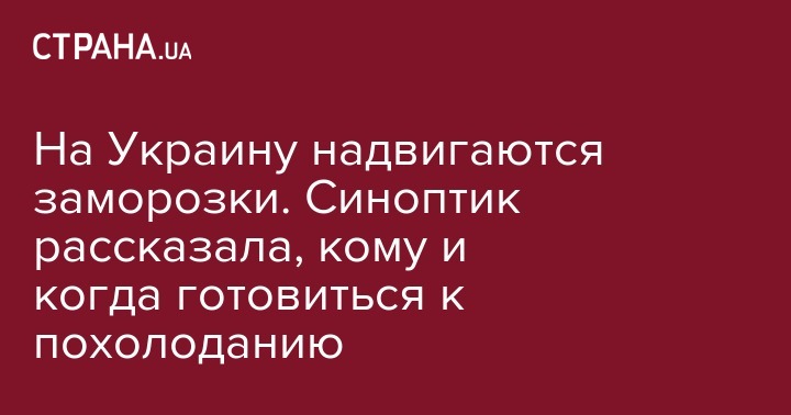 По ее словам, в ночь на воскресенье подморозит запад, юг страны и Винницкую область. А в ночь на понедельник, 1 октября, холодно будет во всех регионах. Синоптик напоминает, что завтра ожидается холодный дождь - поэтому стоит позаботиться о винограде и цветах, если они находятся на улице.