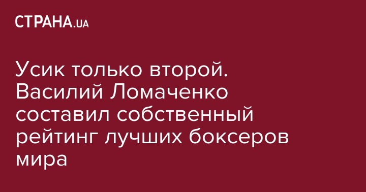 Украинский чемпион мира по боксу (пояс WBA) Василий Ломаченко (11-1, 9 КО) составил собственный рейтинг лучших боксеров мира "pound-for-pound". В нем оказался и Александр Усик, но не на первом месте по версии друга. Об этом сообщает "24 канал".