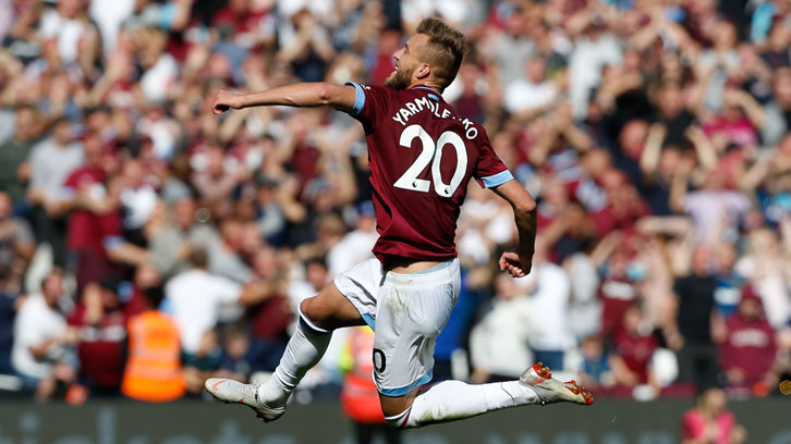 Ярмоленко празднует свой гол в ворота Манчестер Юнайтед, фото: whufc.com