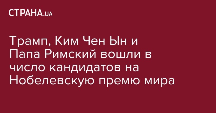 В списке возможных претендентов на премию мира больше 300 кандидатов, однако Трамп, скорее всего, войдет в шорт-лист. В нем также могут оказаться глава КНДР Ким Чен Ын, южнокорейский президент Мун Чжэ Ин, федеральный канцлер Германии Ангела Меркель, папа Римский Франциск и Верховный комиссар ООН по делам беженцев Филиппо Гранди.