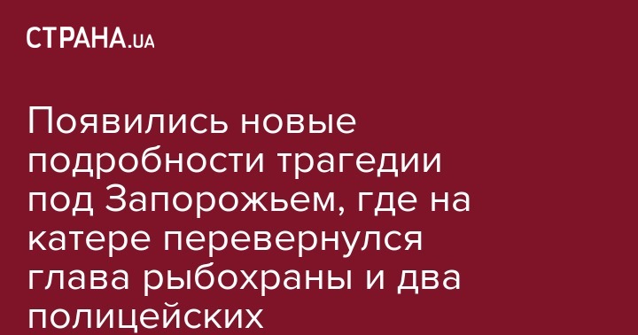 Выяснились новые детали трагедии на воде, которая произошла на Днепре в Запорожской области в воскресенье, 30 сентября. Как оказалось, на борту перевернувшегося катера был глава запорожского рыбоохранного патруля Дмитрий Чайка, а также два полицейских руководителя, пишет издание "Акцент".