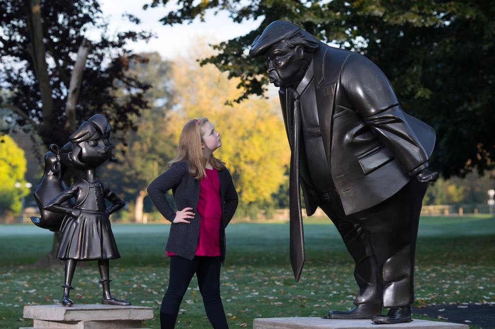 В Британии появился памятник злого Трампа, который кричит на маленькую девочку