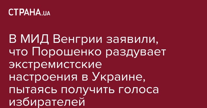 "Они также используют для этой цели венгерское сообщество, что правительство Венгрии считает неприемлемым, не в последнюю очередь ввиду того, что Украина готовится к членству в НАТО и ЕС", - добавил Менцер.