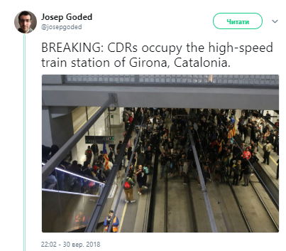 Также десятки членов CDR заблокировали вход в центральные башни финансовой компании CaixaBank, хотя работников пускают через боковые двери. Дороги в городе перекрыты. По всей Каталонии активисты блокируют важные дороги и железнодорожные станции, пишет The Independent.