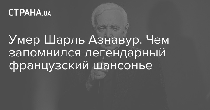 Умер легендарный французский шансонье Шарль Азнавур. Ему было 94 года. В апреле этого года певец уже был госпитализирован перед концертом в Санкт-Петербурге. Ему резко стало плохо и выступление перенесли на 2019-й год.  В последнее время певец жил с семьей в Швейцарии.