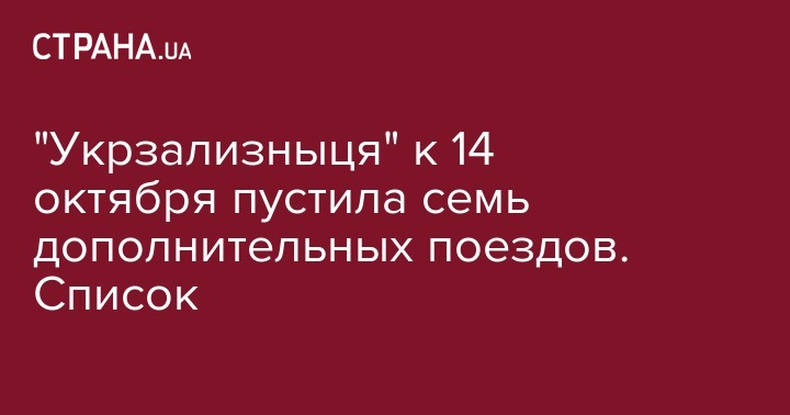 "Укрзализныця" к 14 октября пустила семь дополнительных поездов. Список