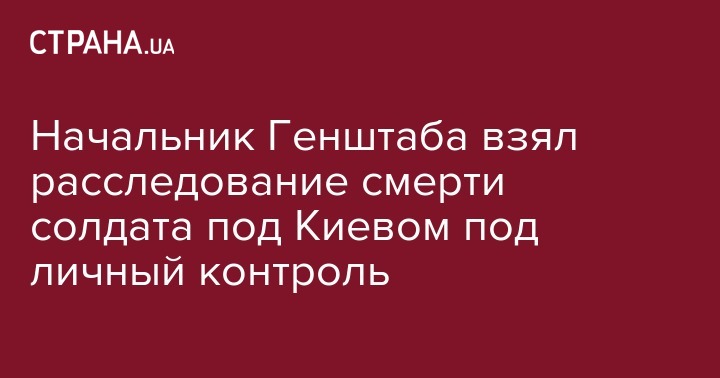Начальник Генерального штаба ВСУ Виктор Муженко взял под личный контроль расследование смерти военослужащего под Киевом. Об этом говорится в сообщении Министерства обороны.