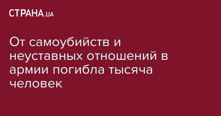 В армии не от боевых действий погибли более тысячи человек, еще три тысячи раненых. Речь идет о самоубийстве, алкоголизме, неосторожном обращении с оружием, неуставных отношениях. Об этом заявил главный военный прокурор Анатолий Матиос в эфире телеканала 112 Украина.