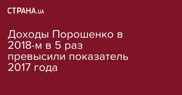 Таким образом, суммарно задекларированный главой государства доход за текущий год по состоянию на вторник составляет около 80,5 млн гривен, что в 5 раз больше, чем за весь 2017 год, когда его доходы составили 16,3 млн гривен.