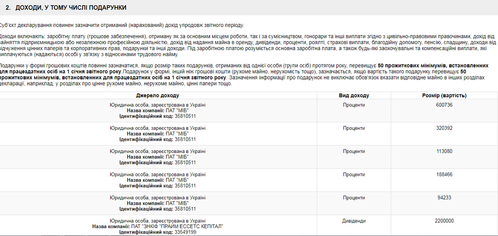 Во вторник, 2 октября, он задекларировал 2,2 млн гривен дивидендов от публичного акционерного общества "Закрытый недиверсифицированный корпоративный инвестиционный фонд "Прайм Эссетс Кэпитал".