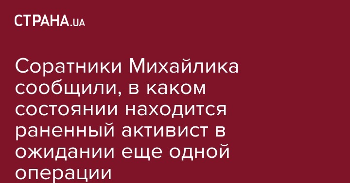 Состояние здоровья одесского активиста Олега Михайлика, который находится в больнице с огнестрельными ранениями и недавно начал передвигаться по палате, стабильное, однако операция по извлечению попавшей в него пули будет проведена не раньше, чем через месяц.