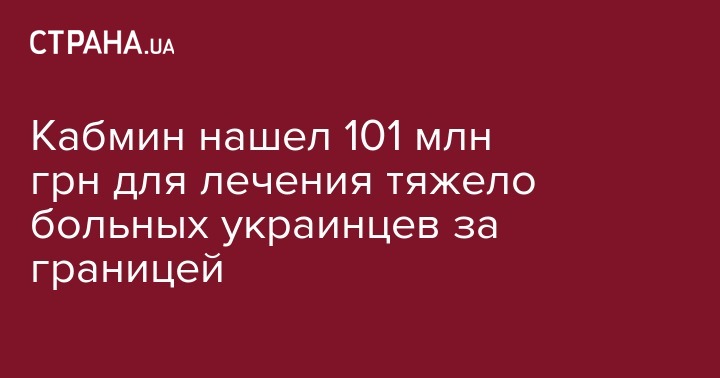 Согласно тексту проекта распоряжения, которым располагает агентство, объем средств на программу лечения за границей был увеличен за счет уменьшения финансирования программы Руководство и управление в сфере государственных финансовых гарантий медицинского обслуживания населения (на 75 млн грн), программы выполнения долговых обязательств по кредитам, привлеченным ГП Укрмедпостач (13,264 млн грн), а также за счет средств, направленных на пилотный проект по трансплантации (34, 118 млн грн)