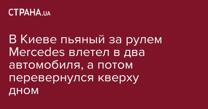 В Киеве пьяный за рулем Mercedes влетел в два автомобиля, а потом перевернулся кверху дном
