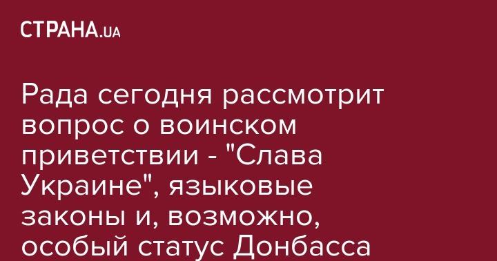 Работу народные депутаты начнут с проекта изменений в Уставы Вооруженных сил относительно воинского приветствия "Слава Украине". Затем будет рассмотрен языковой вопрос.