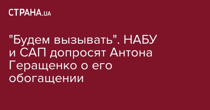 По его словам, пока что Геращенко не приходил в НАБУ и повестку ему о вызове на допрос не направляли. Ранее СМИ обнародовали расследование, согласно которому Геращенко может быть причастен к незаконному обогащению.