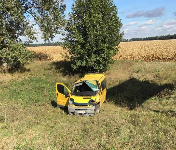 Сообщается, что "Славута" врезалась в микроавтобус на выезде из Борисполя по направлению на Переяслав. От удара на обочину вылетел еще один автомобиль.