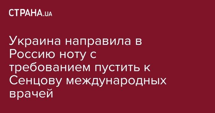 Украина направила ноту в МИД РФ по вопросу украинского режиссера и политзаключенного Олега Сенцова, который прекратил голодовку в связи с тем, что к нему должны были применить принудительное питание. Об этом написала в Twitter пресс-секретарь МИД Марьяна Беца.