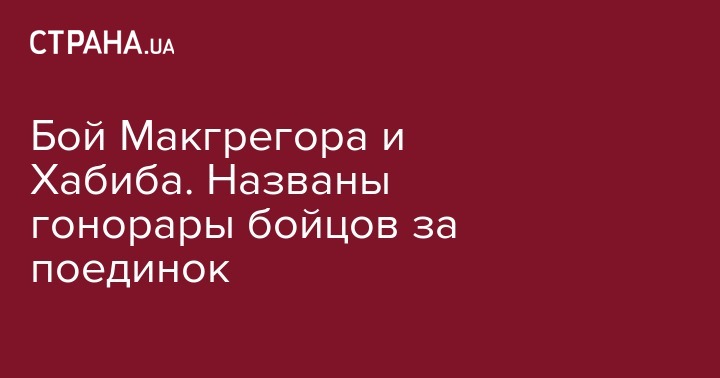 Названы гонорары бойцов Хабиба Нурмагомедова и Конора Макгрегора за их грядущий поединок. Об этом передает 1+1.