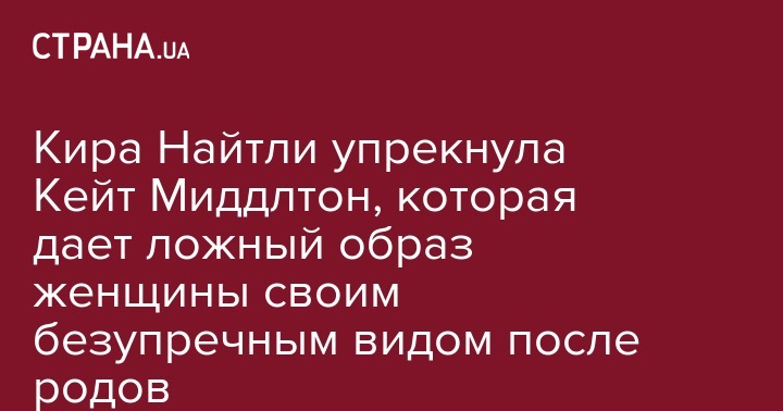 Актриса Кира Найтли обвинила супругу британского принца Уильяма Кейт Миддлтон в том, что она "дала людям ложный, нереалистичный образ женщины". Герцогиню и мать троих детей она упрекнула в том, что Кейт после родов "выпархивала на публику свеженькая и нарядная".
