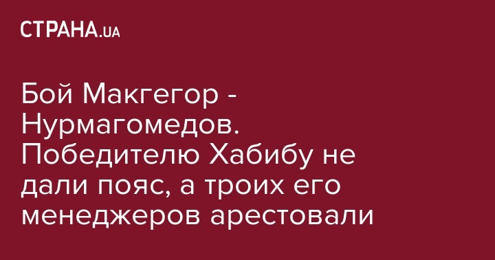 Бой Макгегор - Нурмагомедов. Победителю Хабибу не дали пояс, а троих его менеджеров арестовали