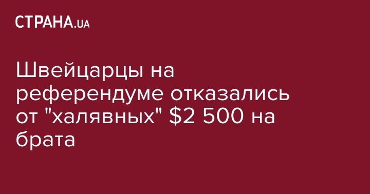 Швейцарцы на референдуме отказались от "халявных" $2 500 на брата