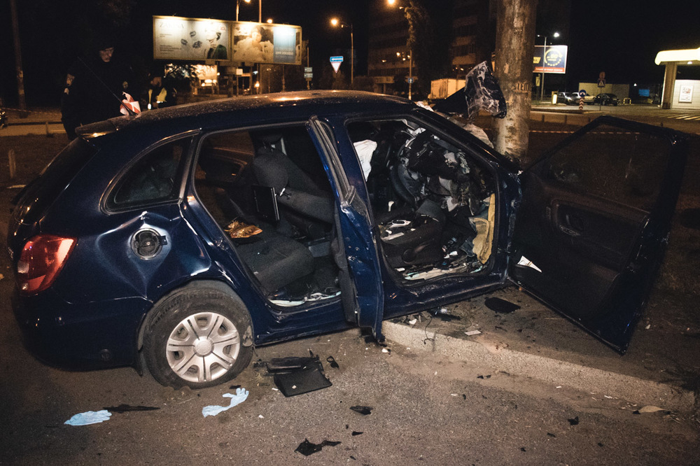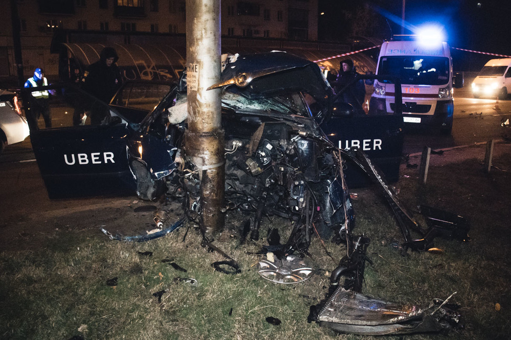 Столичное такси Uber влетело в столб. Авто разорвало на части, пассажир в реанимации