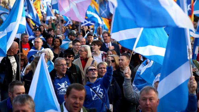 Марш бело-голубых сепаратистов. В Шотландии 100 тысяч человек вышли на улицы за отделение от Британии