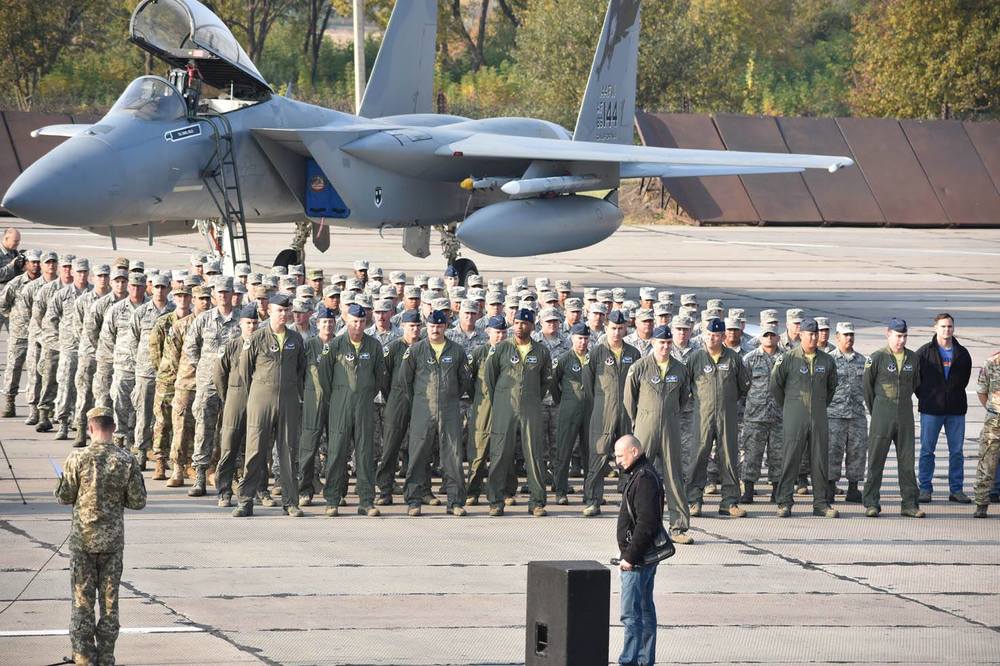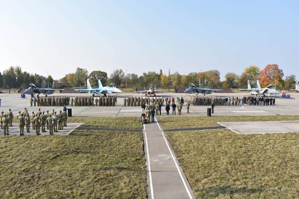 "В течение последней недели с целью проведения многонациональных учений "Чистое небо 2018" на аэродром Староконстантинов в Хмельницкой области был передислоцирован личный состав и самолеты Воздушных сил Вооруженных Сил Украины. За последние дни жители города увидели в небе не только привычные для них Су-24, но и самолеты истребительной авиации типа МиГ-29 и Су-27. Кроме того, событием стал прилет самолетов F-15 144-го истребительного крыла Национальной гвардии штата Калифорния", - говорится в сообщении.