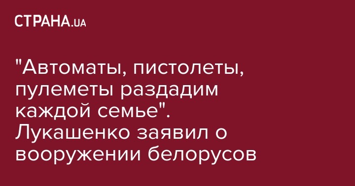 "Автоматы, пистолеты, пулеметы и патроны к ним - не дай Бог война, мы раздадим в каждую семью. И мы будем защищать свою территорию все вместе. Ну, детей давайте выведем. Старики и даже женщины, и так далее: 7 миллионов человек - 7 миллионов получат оружие, чтобы они могли защищаться ", - заявил Лукашенко во время посещения военного полигона в Брестской области на западе страны.