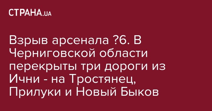 Взрыв арсенала №6. В Черниговской области перекрыты три дороги из Ични - на Тростянец, Прилуки и Новый Быков