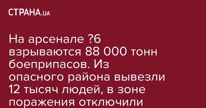 Из зоны поражения из-за взрывов боеприпасов на арсенале №6 в Ичне и Дружбе Черниговской области эвакуировали около 12 тысяч человек. Информация о жертвах и пострадавших не поступало. Об этом сообщает пресс-служба ГосЧС.