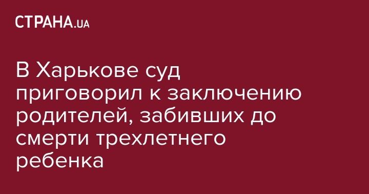Октябрьский районный суд Харькова 9 октября приговорил к 10 и 8 годам тюрьмы родителей, замучивших до смерти 3-летнего ребенка. Об этом говорится в сообщении пресс-службы прокуратуры Харьковской области.