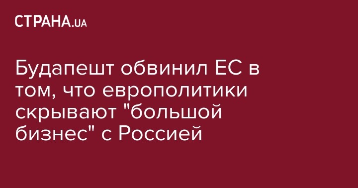 Будапешт обвинил ЕС в том, что европолитики скрывают "большой бизнес" с Россией