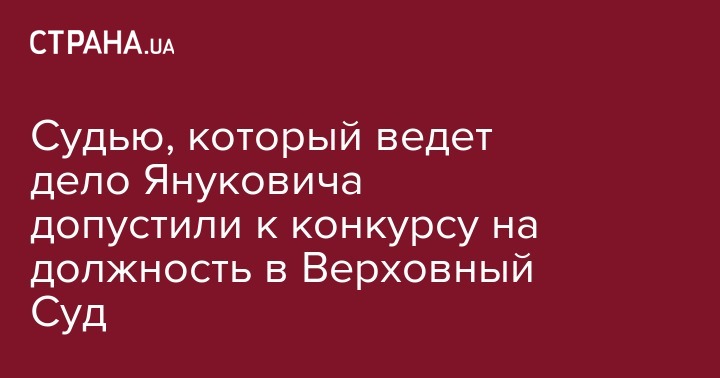 Высшая квалификационная комиссия судей (ВККС) допустила к конкурсу в Верховный Суд судью Оболонского районного суда Киева Максима Титова, который в составе коллегии рассматривает дело бывшего президента Украины Виктора Януковича. Об этом говорится в сообщении ВККС, передают Украинские новости.