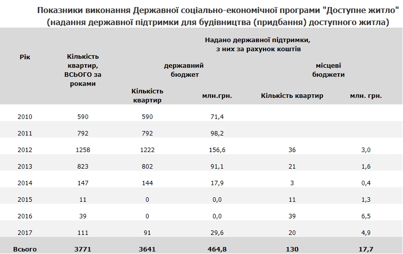 Кроме того "мертвой" квартирной очереди, в Украине вроде бы действует еще один механизм - госпрограмма "Доступное жилье", которая предоставляет до 50% стоимости квартиры. Остальное - под льготный процент в банке, которому разницу компенсирует государство.