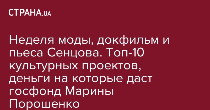 Неделя моды, докфильм и пьеса Сенцова. Топ-10 культурных проектов, деньги на которые даст госфонд Марины Порошенко