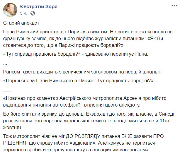 Повторюсь, по состоянию на тот момент экзархи еще не начали презентацию своего отчета о работе в Украине."