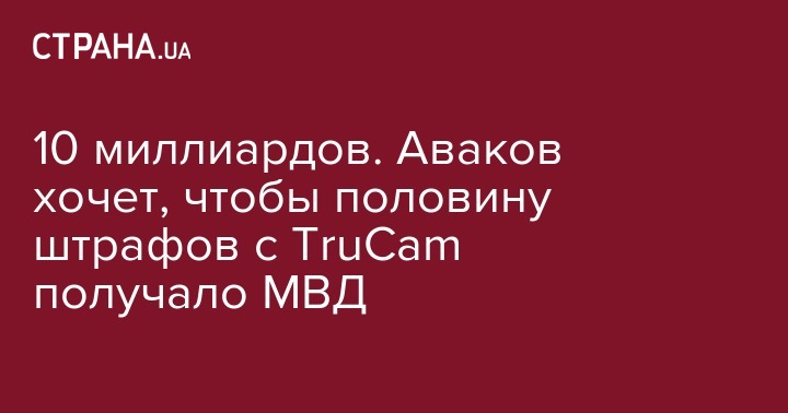 10 миллиардов. Аваков хочет, чтобы половину штрафов с TruCam получало МВД