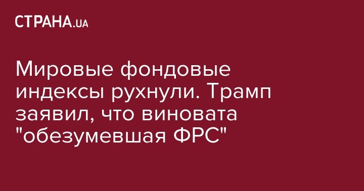 Мировые фондовые индексы рухнули. Трамп заявил, что виновата "обезумевшая ФРС"