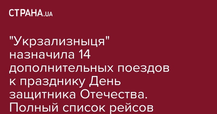 "Укрзализныця" назначила 14 дополнительных поездов к празднику День защитника Отечества. Полный список рейсов
