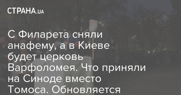 Сегодня на Синоде Вселенский патриархат снял анафему с патриарха, предстоятеля Украинской православной церкви Киевского патриархата Филарета и архиепископа, предстоятеля Украинской автокефальной православной церкви Макария.