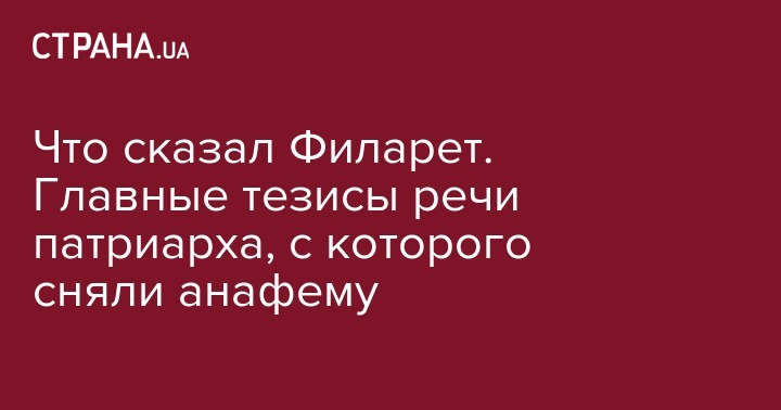 Что сказал Филарет. Главные тезисы речи патриарха, с которого сняли анафему
