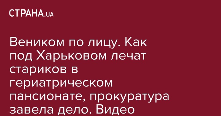 "Харьковская городская прокуратура № 6 начала уголовное производство по ч. 2 ст. 126 УК Украины (побои и истязания) по факту возможных издевательств над стариками в гериатрическом пансионате. Об избиении и унижении пенсионеров стало известно из видео, которое выложили в социальную сеть интернет-пользователи. На видео женщина, вероятно, - работница заведения, бьет веником по лицу и телу пожилого мужчину. Кроме того, она унижает его.