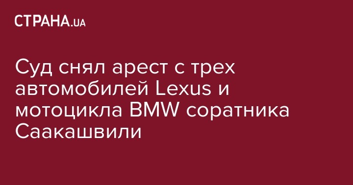 Печерский районный суд Киева отменил арест автопарка (три авто Lexus и мотоцикл) руководителя Киевского областного отделения партии Михаила Саакашвили "Рух новых сил" Севериона Дангадзе. Об этом со ссылкой на постановление суда сообщает "Главком".