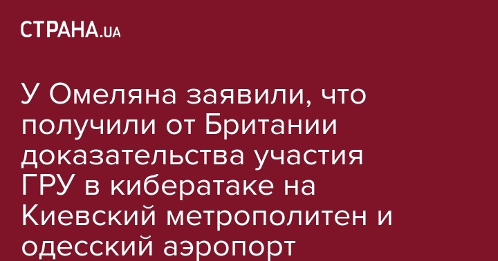 У Омеляна заявили, что получили от Британии доказательства участия ГРУ в кибератаке на Киевский метрополитен и одесский аэропорт