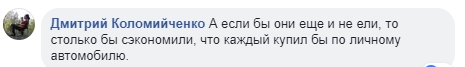 В комментариях к записи киевляне иронизируют: "А если бы они еще и не ели, то столько бы сэкономили, что каждый купил бы по личному автомобилю".